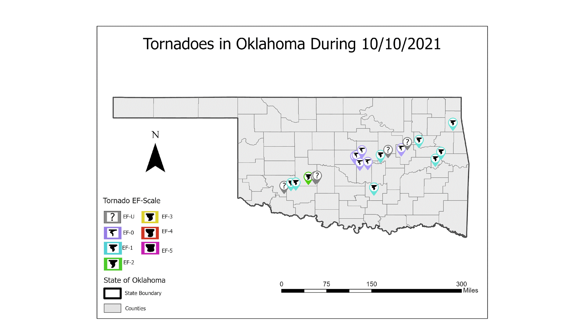For the most part in 2021, Oklahoma saw a number of tornadoes far below its yearly average. However, an active October disrupted this trend, bringing the number up to status quo. This busy “second storm season” brought about 34 tornadoes, which shattered the previously-held record of 27 tornadoes in October of 1998. Thankfully, the strongest tornado of the outbreak was rated as an EF-2 on the Enhanced Fujita Scale.